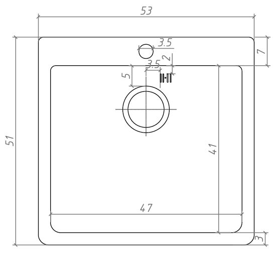 Размеры мойки: 530*510 мм.