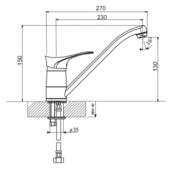 - Длина излива – 230 мм;