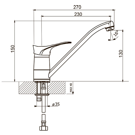 Поворотный изливКерамический картридж 40ммГибкая подводкаЦвет: черный (102)