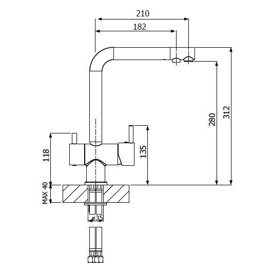 Фильтрованная вода подается по отдельной трубке и не смешивается с водопроводной водой