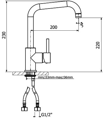 Поворотныи? излив;Керамическии? картридж 40мм;Гибкая подводка