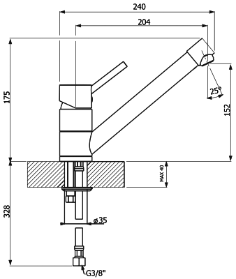 Поворотныи? излив;Керамическии? картридж 40мм;Гибкая подводка