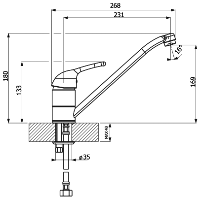 Поворотныи? излив;Керамическии? картридж 40мм;Гибкая подводка;