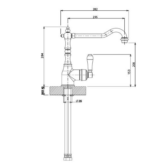 Поворотный изливКерамический картридж 40ммГибкая подводка