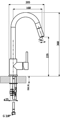 Поворотныи?, выдвижнои? излив;Керамическии? картридж 40мм;Гибкая подводка