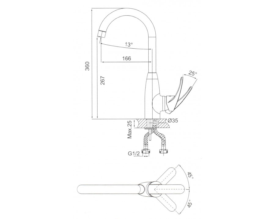 Этот высокий однорычажный смеситель привлекает внимание изысканным и необычным дизайном.