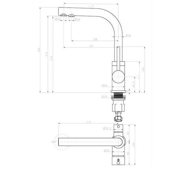 Совмещенный излив для фильтра |
