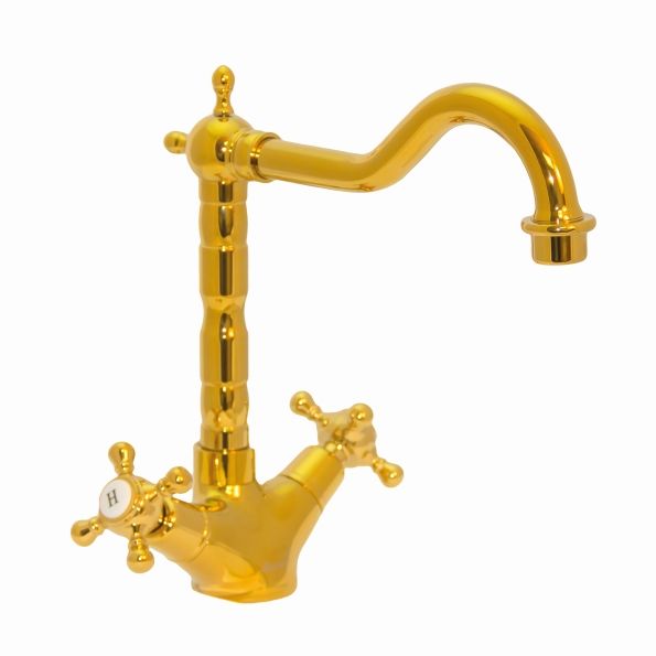 Двухзахватный смеситель для кухни из высококачественной латуни с PVD-покрытием, в стиле "ретро".