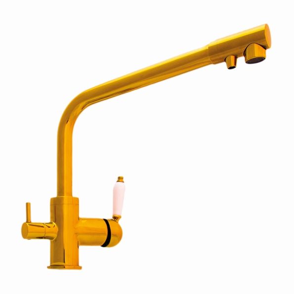 Однозахватный смеситель для кухни из высококачественной латуни с PVD-покрытием и подключением фильтра для питьевой воды, в современном стиле.