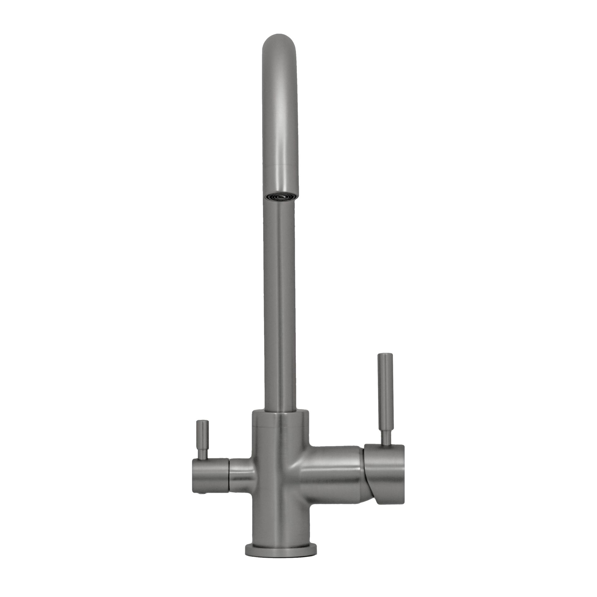 Сечение излива: круглое. Форма излива: традиционная, арочная, u-образная. Форма аэраторов: круглая. Излив питьевой воды: встроенный в основной аэратор.