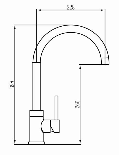 Высота смесителя: 398 мм. Высота излива: 266 мм. Длина излива: 228 мм.