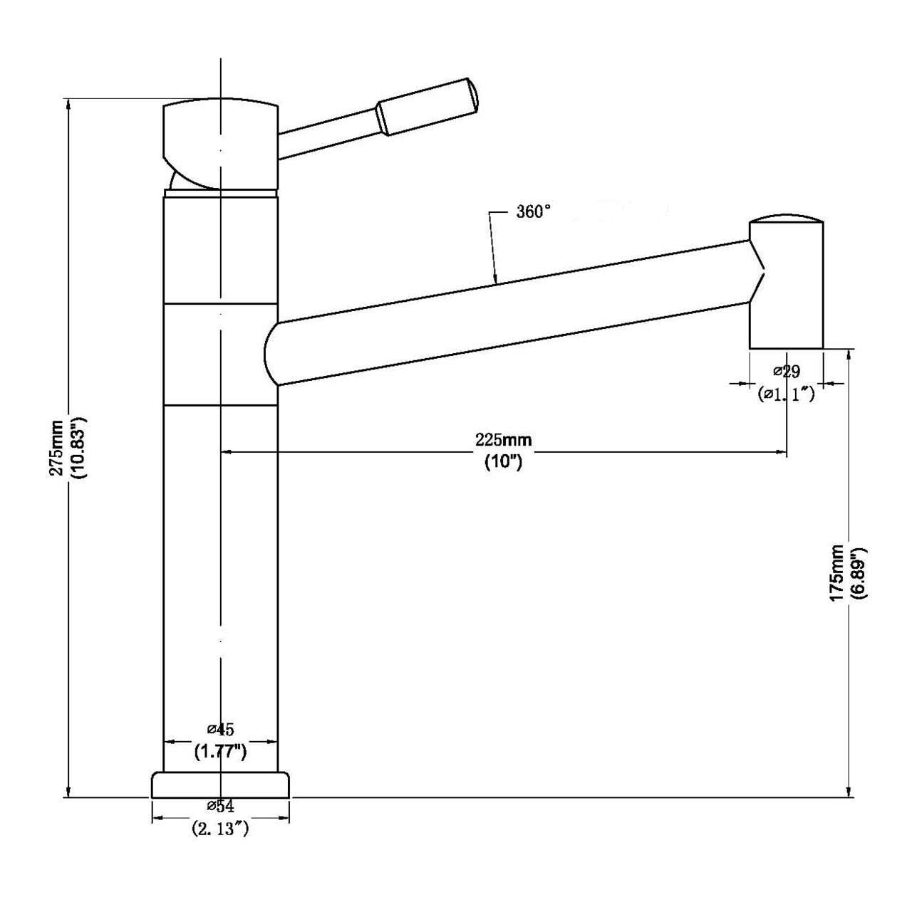 Высота смесителя: 275 мм. Высота излива: 175 мм. Длина излива: 225 мм.