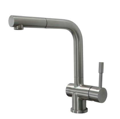Однозахватный смеситель для кухни из нержавеющей стали с выдвижной лейкой на смесителе.