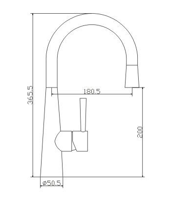 Высота смесителя: 365 мм. Высота излива: 200 мм. Длина излива: 180 мм.