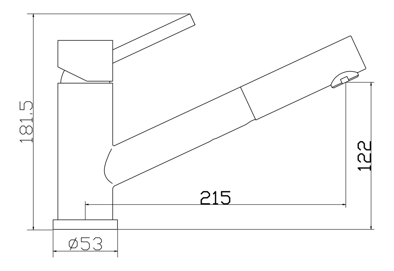 Высота смесителя: 181 мм. Высота излива: 122 мм. Длина излива: 215 мм.
