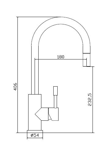 Высота смесителя: 406 мм. Высота излива: 232 мм. Длина излива: 180 мм.