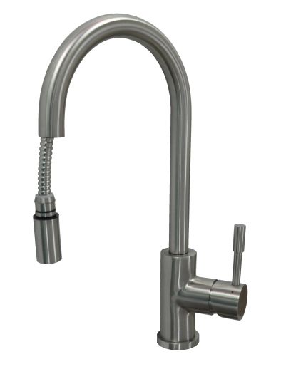 Однозахватный смеситель для кухни из нержавеющей стали с выдвижной лейкой на смесителе.