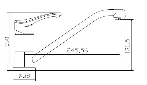 Высота смесителя: 150 мм. Высота излива: 131 мм. Длина излива: 246 мм.