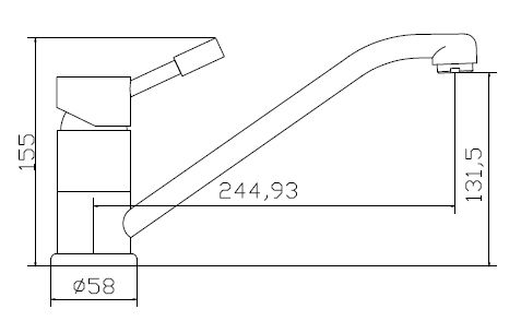 Высота смесителя: 155 мм. Высота излива: 131 мм. Длина излива: 245 мм.