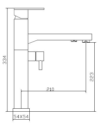 Высота смесителя: 334 мм. Высота излива: 223 мм. Длина излива: 210 мм.