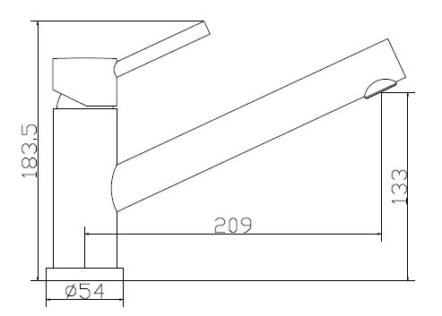 Высота смесителя: 183 мм. Высота излива: 133 мм. Длина излива: 209 мм.