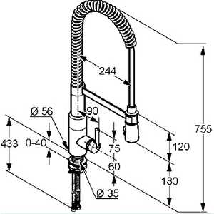 - поворотный излив с гибкой пружиной из нержавейки с душем для мытья посуды
