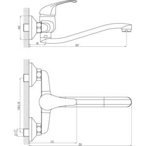Смеситель для кухни Rossinka настенный с изливом 250 мм (A35-24)