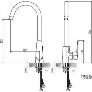 - Настольные смесители в комплекте с гибкой подводкой G 1/2'.