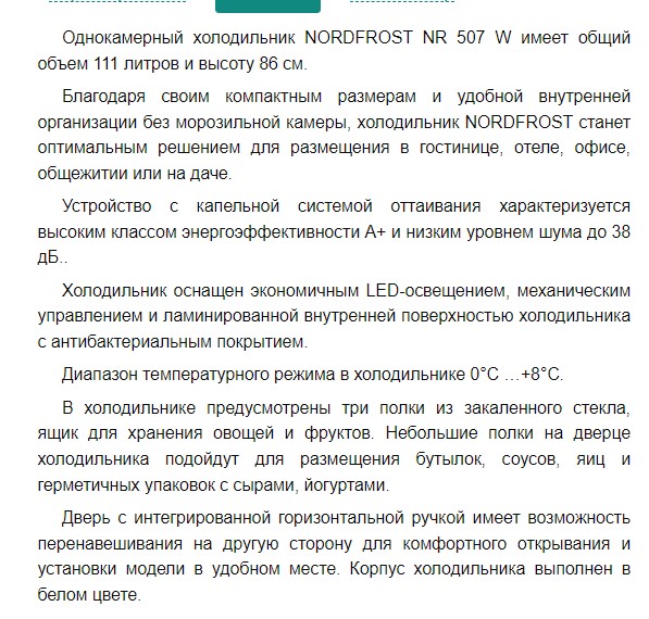 Холодильник NORDFROST (Нордфрост) NR 507 W