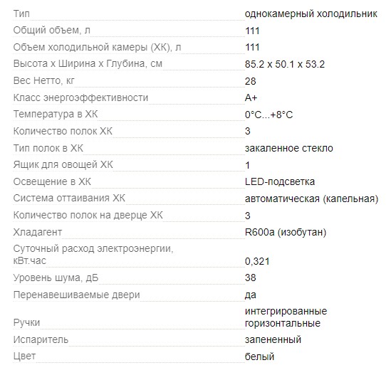 Наличие морозильной камеры |