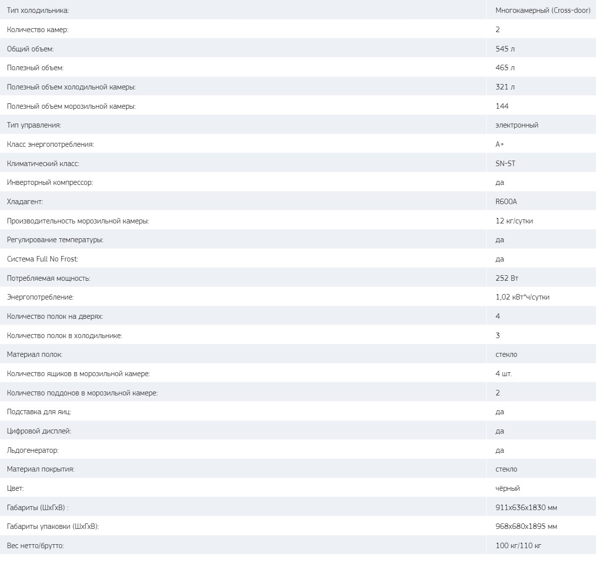 Мощность замораживания |