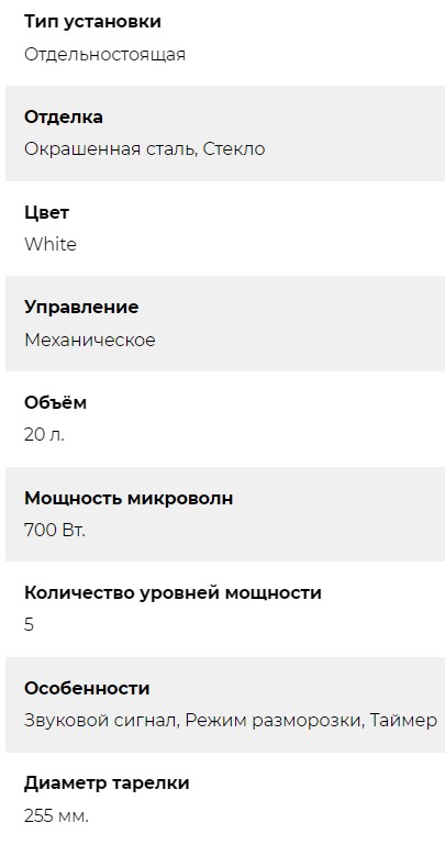 Микроволновая печь Lex (Лекс) FSMO 20.02 WH