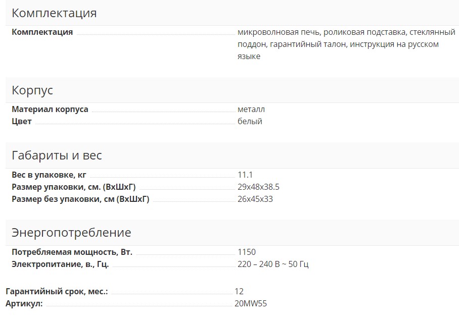 Микроволновая печь Supra (Супра) 20MW55
