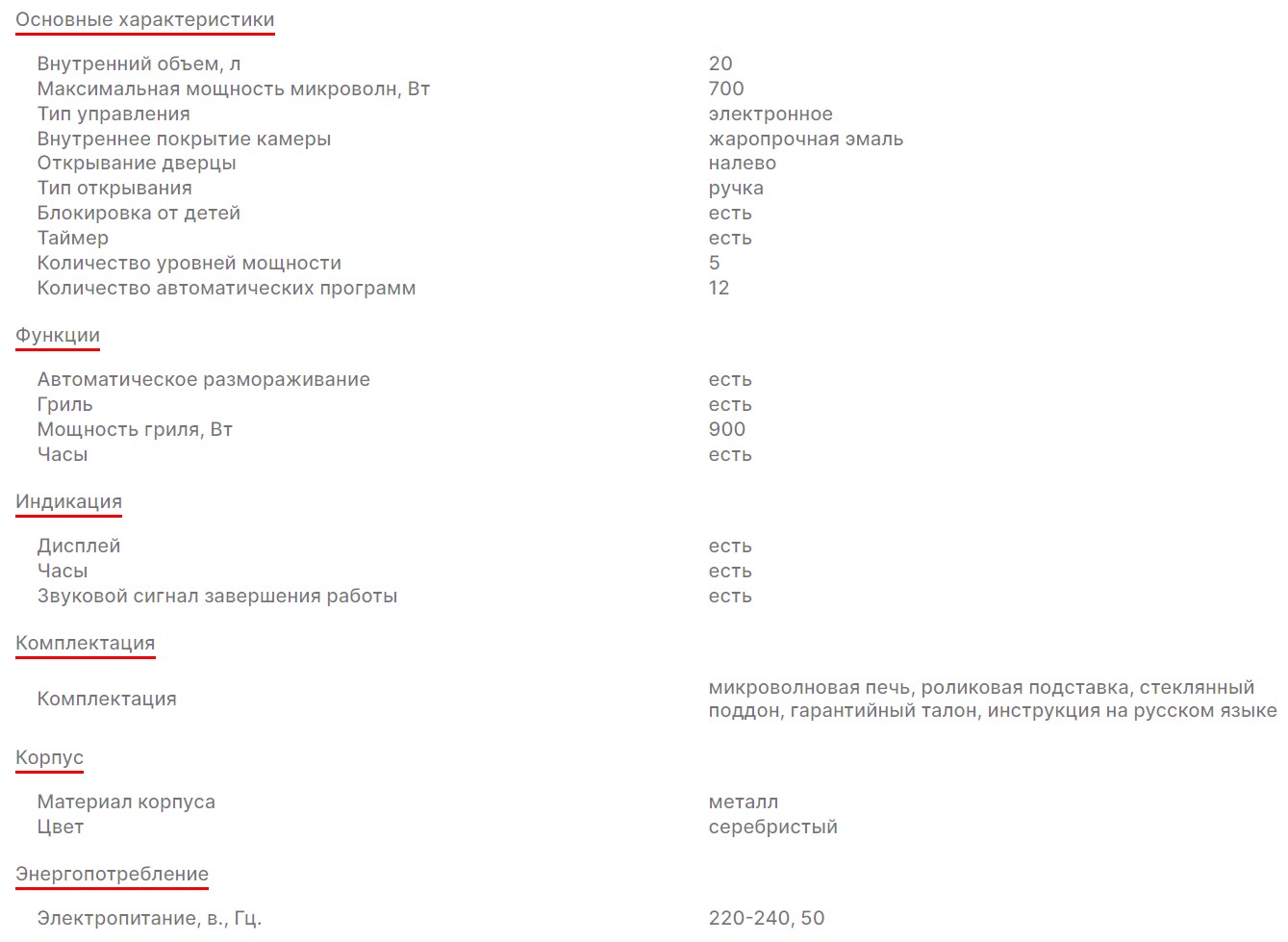Микроволновая печь Supra (Супра) 20TSG55
