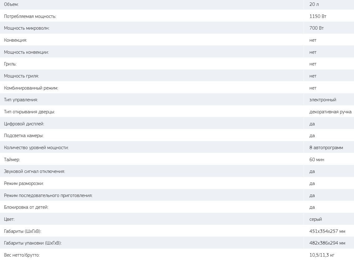 Микроволновая печь Tesler (Теслер) ME-2044 Grey