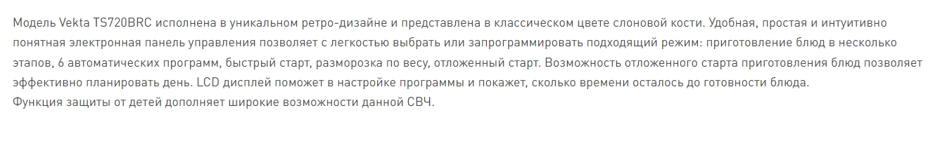 Микроволновая печь VEKTA (Векта) TS720BRC