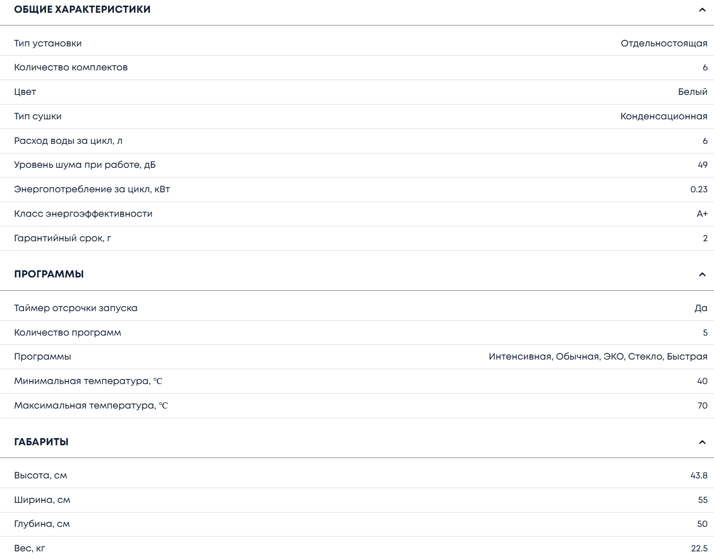 Количество программ мойки |
