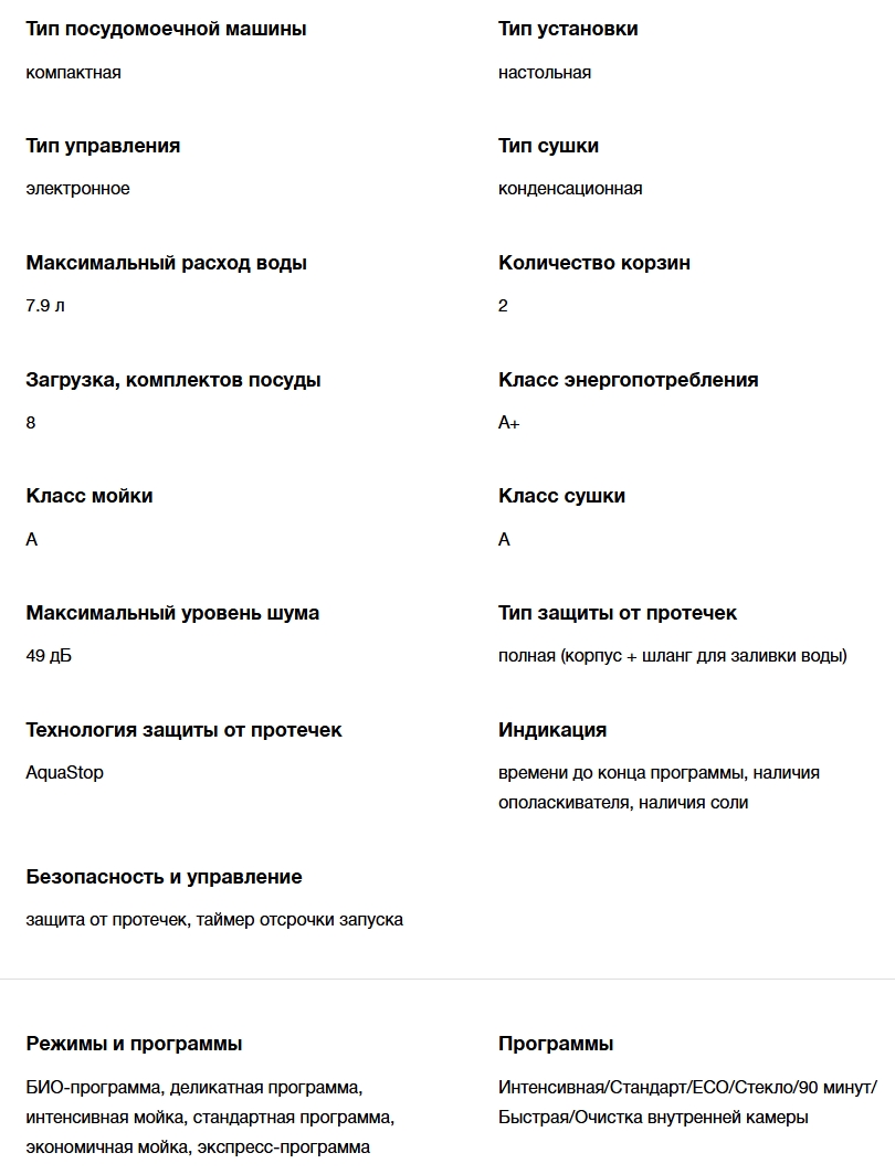 Количество программ мойки |
