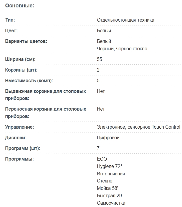 Количество программ мойки |