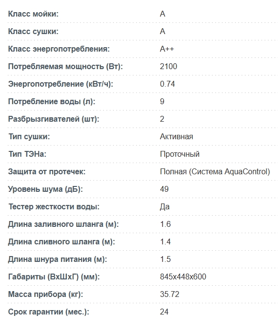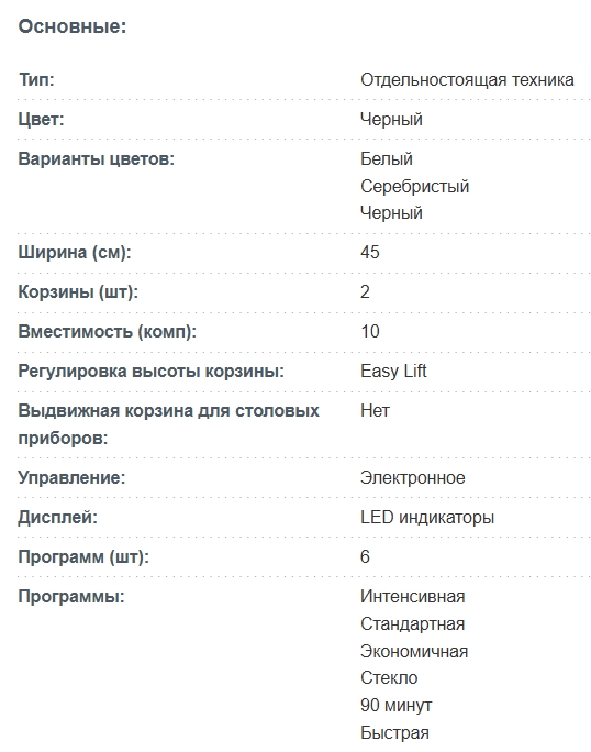 Количество программ мойки |