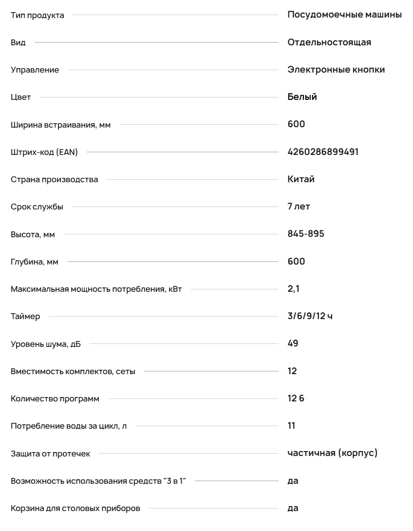 Посудомоечная машина Krona (Крона) RIVA 60 FS WH