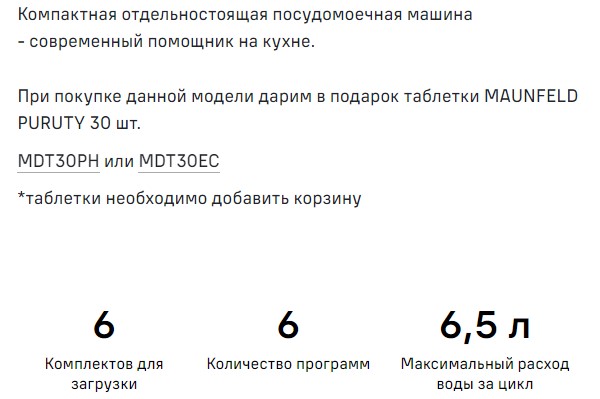 Посудомоечная машина MAUNFELD (Маунфилд) MLP-06DS