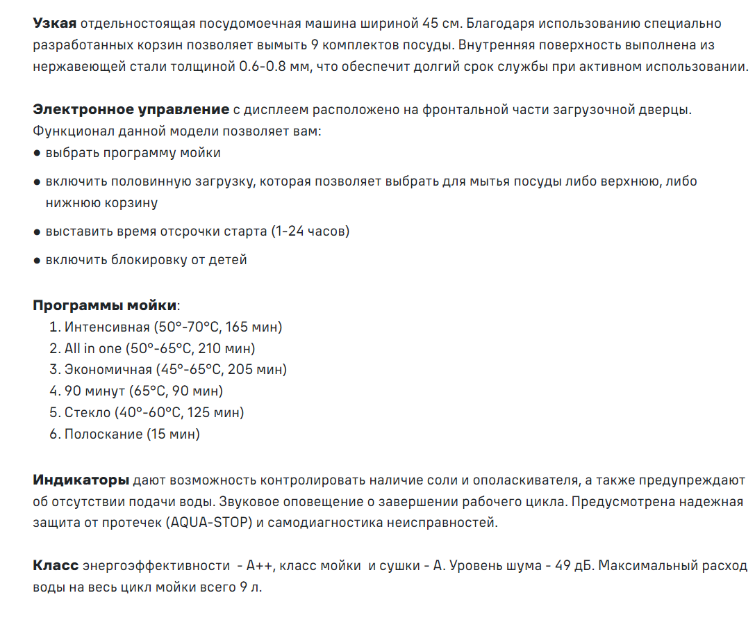 Количество программ мойки |