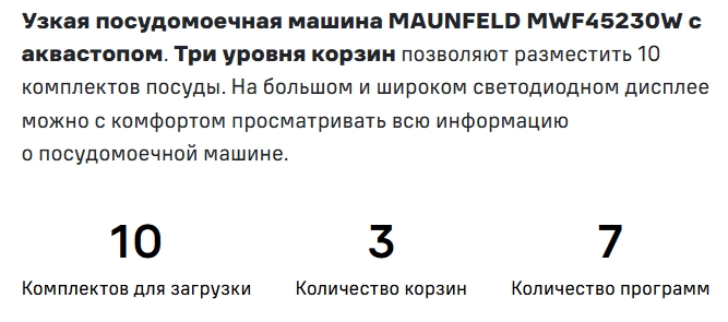 Посудомоечная машина MAUNFELD (Маунфилд) MWF45230W