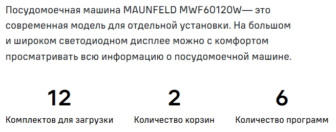Посудомоечная машина MAUNFELD (Маунфилд) MWF60120W