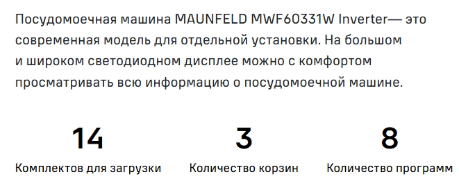 Посудомоечная машина MAUNFELD (Маунфилд) MWF60331W Inverter