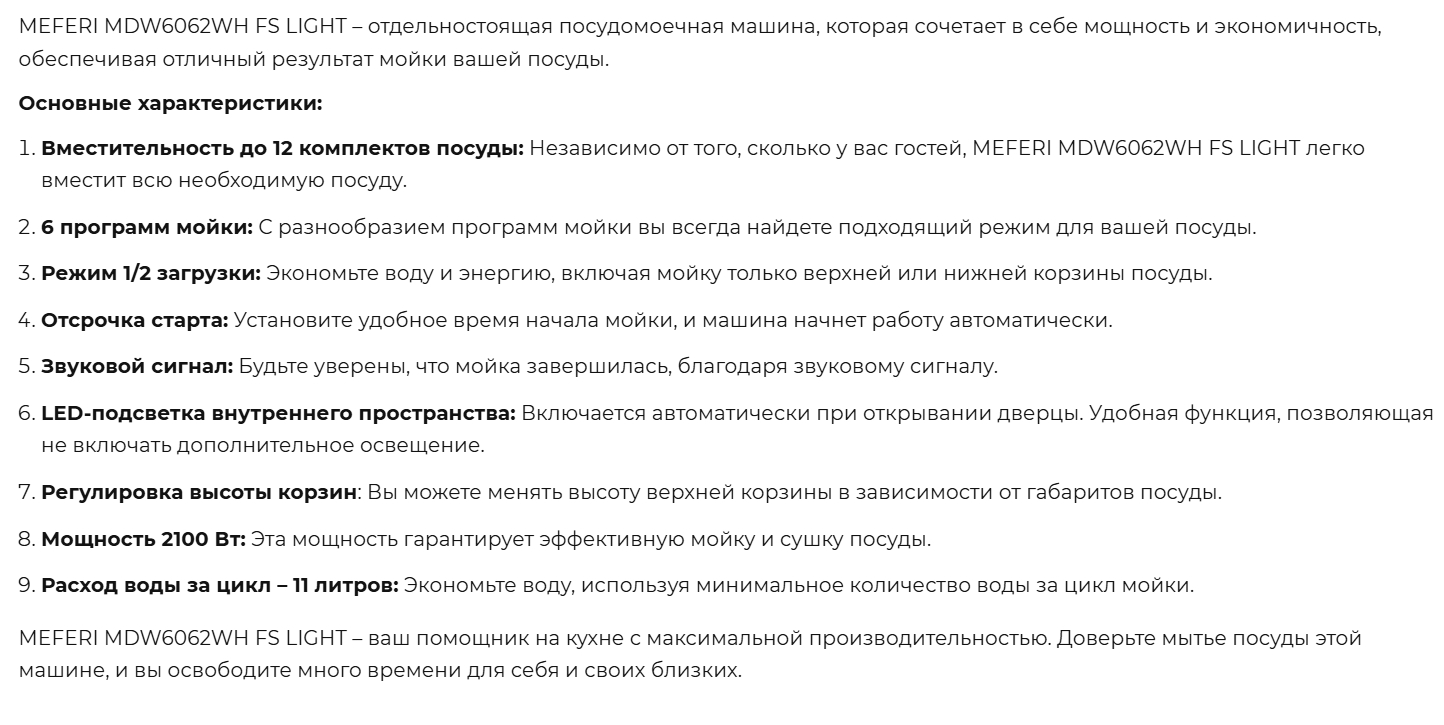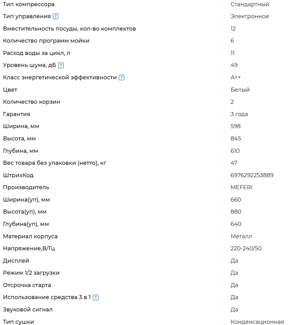Посудомоечная машина Meferi (Мефери) MDW6062WH FS LIGHT
