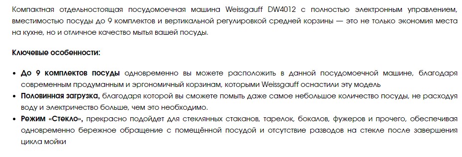 Посудомоечная машина Weissgauff (Вайсгауф) DW 4012