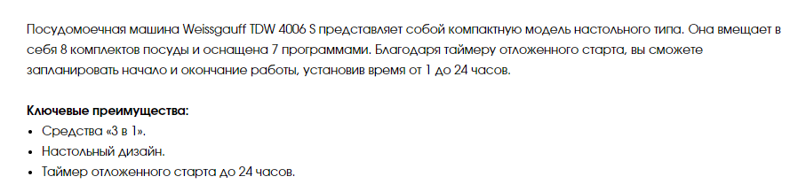 Посудомоечная машина Weissgauff (Вайсгауф) TDW 4006 S