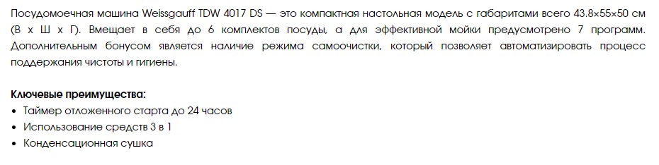 Посудомоечная машина Weissgauff (Вайсгауф) TDW 4017 DS